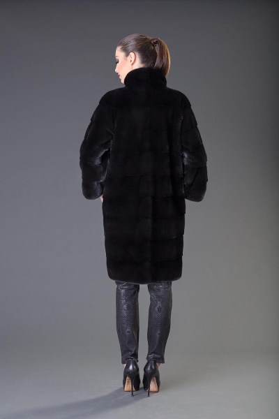 Mink Midi Coat with long sleeves, skin to skin, real fur mink coat BLACKGLAMA, Superior quality, Genuine Mink Fur, luxurious quality, Mink Fur is durable, resilient and very soft, made in Greece.