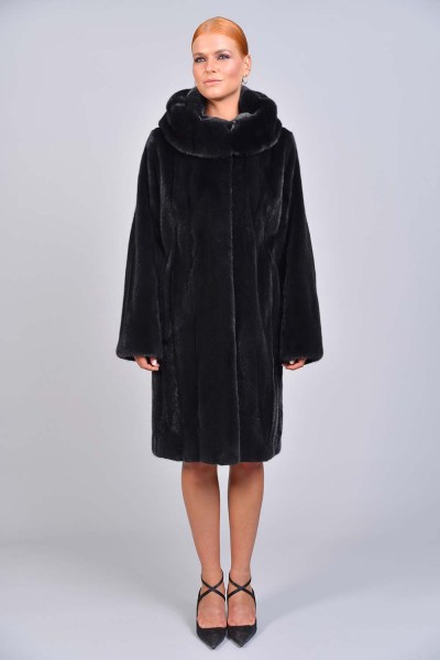 Mink coat with long sleeves & english collar, fitted silhouette, ''let out'' technique, length 110cm, real fur mink coat BLACKGLAMA, Genuine Mink Fur, luxurious quality. Mink Fur is durable, resilient and very soft, ...